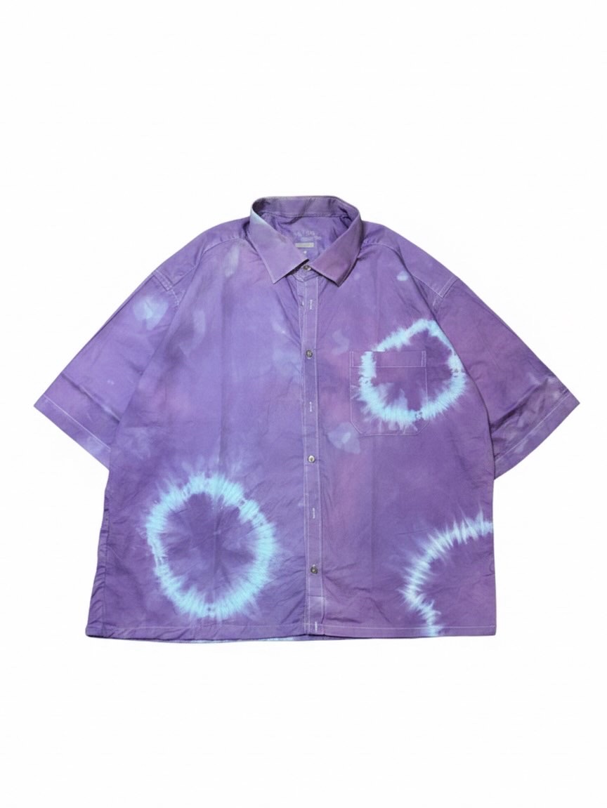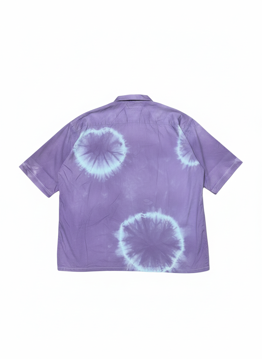 A statement shirt featuring a unique hand-dyed circle pattern that makes every piece one of a kind. Designed in a relaxed boxy fit with half sleeves, it offers both comfort and standout style. Finished with a classic collar, front button closure, and a chest pocket, this shirt is perfect for casual outings, streetwear looks, or layering.