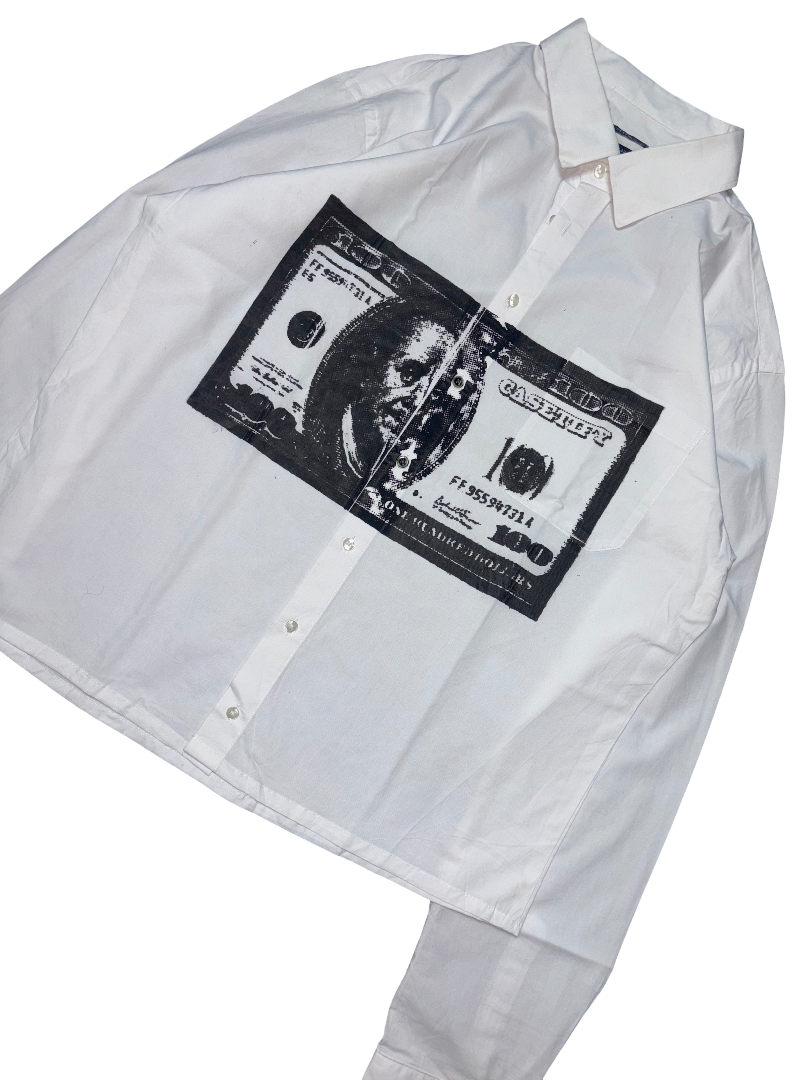 Be the first to review “Vintage White Boxy Shirt – Currency Print Custom”
